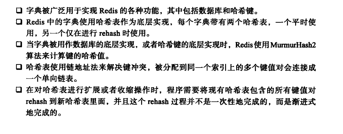 redis使用链地址法解决冲突。每个哈希表节点都有一个next指针,多个哈希表节点可以用next指针构成一个单项链表,被分配到同一个索引上的多个节点可以使用这个单向链表连接起来,这就解决了键冲突的问题。(个人感觉和map差不多)