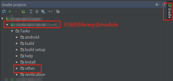 2.在AS最右侧点击Gradle按钮,在下面找到对应module/other/transformClassesAndResourcesWithSyncLibJarsForRelease或transformClassesAndResourcesWithSyncLibJarsForDebug按钮,编译出build/intermediates/bundles/release/目录下的classes.jar包: