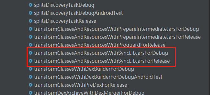 //dependsOn 就是代替手动去点击右侧gradle/对应module/other/transformClassesAndResourcesWithSyncLibJarsForRelease命令