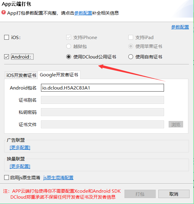 点击打包后 代码上传云端 喝杯茶稍等几分钟就ok了