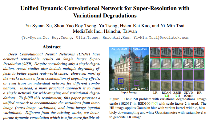 CVPR2020论文:Unified Dynamic Convolutional Network for Super-Resolution with Variational Degradations