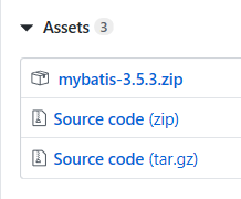点击连接,选择下载Mybatis的jar包。这里有三个文件,基础使用的话,下载第一个mybatis-3.5.3.zip即可,如果需要查看源码的话,建议将Source code也下载下来,Windows使用zip,Ubuntu使用tar.gz;