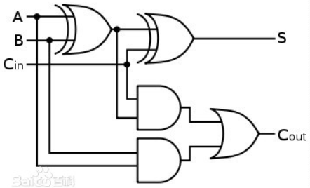 半加器和全加器的区别在于,是否有进位输入端,可以直观地理解为,半加器是两个一比特相加,而全加器是三个一比特相加,输出结果和进位信号。