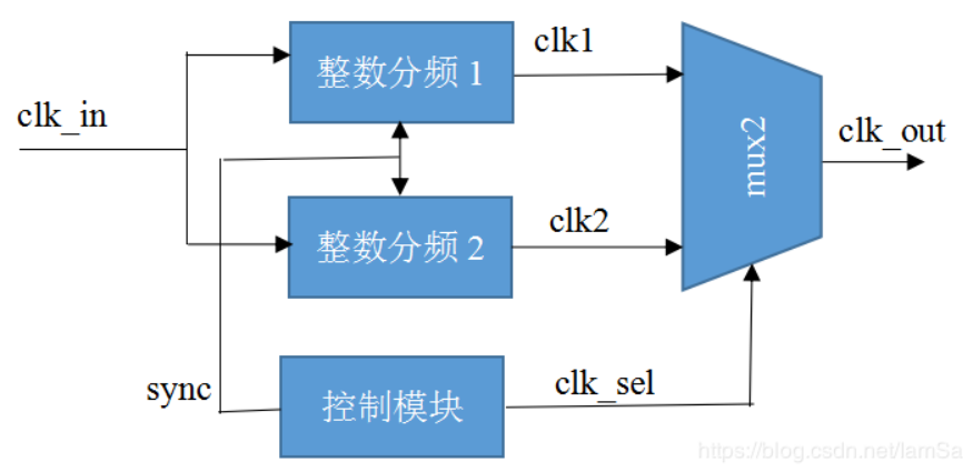 将M分频进行N1次和M+1分频进行N2次,那么在M*N1+(M+1)*N2个周期内,整体可以看作(M*N1+(M+1)*N2)/(N1+N2)=N分频。