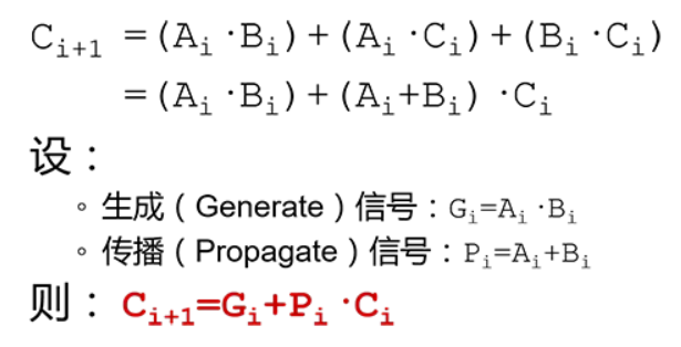 为了改进行波仅为加法器的延迟问题,可以将全加器的进位信号转化为G和P以及本级进位输入组成的逻辑。如下图