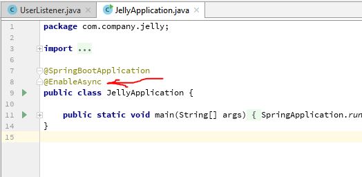 在UserListener中,在需要做异步处理的方法上加上注解@Async