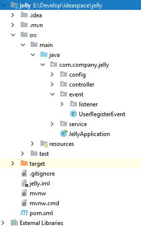 编写用户注册事件类,放在event包内,这个类可以根据需求添加一些属性,而这些属性就是代表发生这件事的基本信息。可以通俗的理解,要知道一件事,前提肯定要知道是什么事情。我在这里添加了属性username,表示用户名。