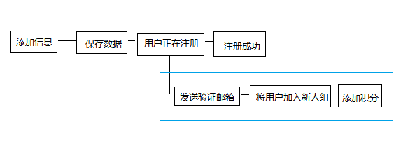 如上图所示,用户在注册时,后台需要处理一些系列流程,实际业务逻辑可能更加复杂。这样写很直观,但是不利于后期新业务逻辑的添加。