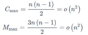 n-1趟排序,每趟要进行n-i次比较,且每次比较必须移动记录3次来达到交换记录位置。此时,比较和移动次数均达到最大值:
