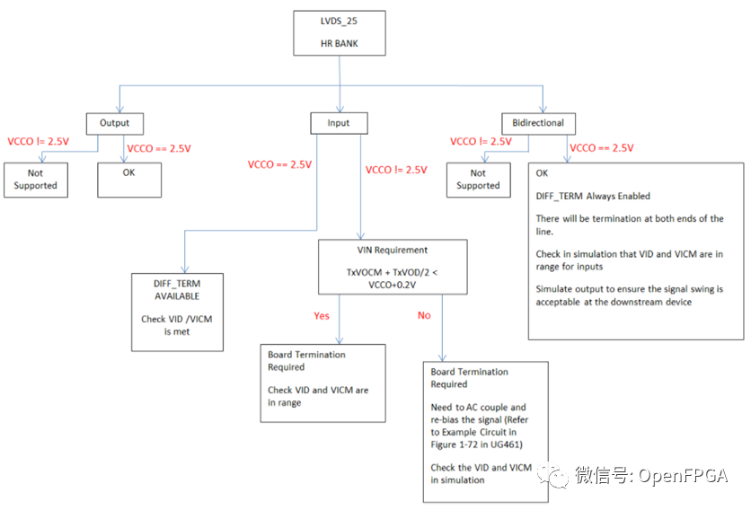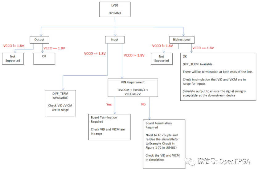 当LVDS作为输入引脚时,如果相应Bank的VCCO与对应的电平标准不匹配,即使可以使用,但DIFF_TERM功能一定不可使用。