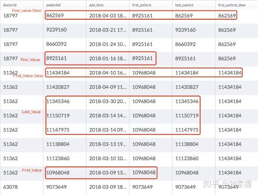 First_Value(patientId) over(partition by doctorId order by add_time desc) first_patient_desc