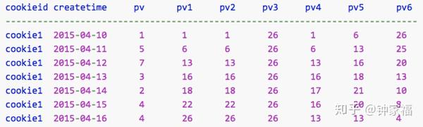 sum(pv) over(partition by cookieid order by created) as pv1,