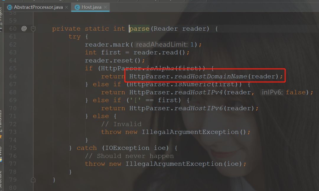 到这里我们也就知道了处理Host头部的类就是这个HttpParser类。