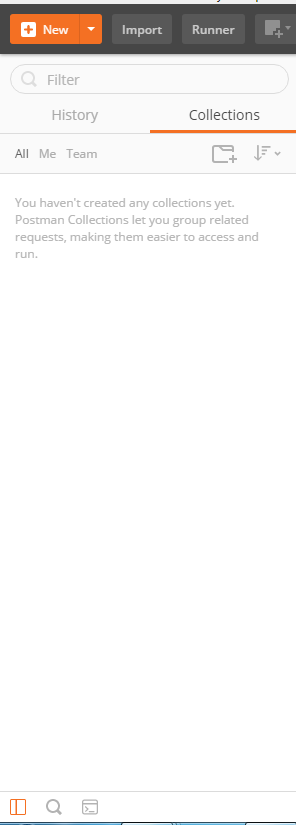 - New:新建request请求、collection集合、environment、documentation、mocker server、monitor