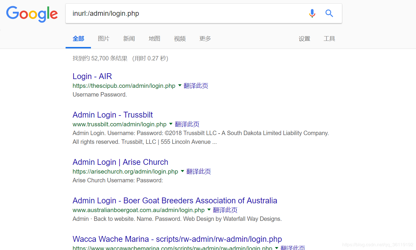 而上面这些命令中用的最多的就是 inurl: ,利用这个命令,可以查到很多意想不到的东西