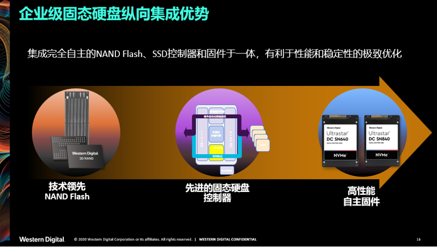 其二,西部数据所有闪存产品都采用了纵向集成的策略。所谓纵向集成,即集成完全自主的NAND Flash、SSD控制器和固件于一体,最大限度将闪存的性能和稳定性发挥到极致。这种纵向集成所带来的极致能力,显然是当下用户们在各种应用中最为迫切需要的。