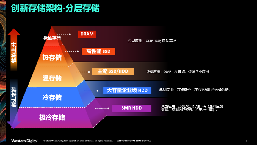 也正因为如此,像西部数据这样聚焦在数据基础架构的厂商,近年来力推创新存储架构--分层存储,通过更加精细化的管理与分层,以及多种组合来满足应用的需求。