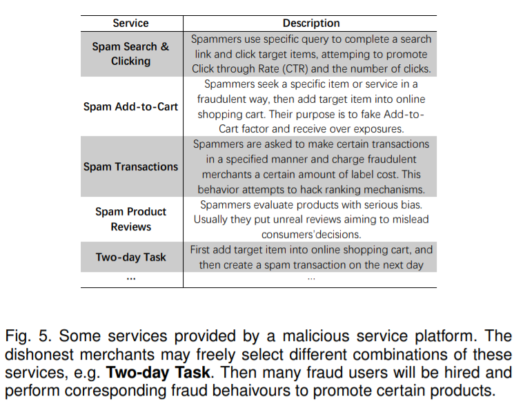讲了这么多方法论,但追溯其本源,这么多纷繁复杂的问题依然是由任务驱动的,正是有许许多多现实世界的应用,要求我们设计不同的模型来解决尺度更大、监督更弱、效果更强、速度更快、理论性质更强的 MLC 模型。因此,在文章的最后一部分,我们介绍了近年多标签领域一些最新的应用,如 Video Annotation、Green Computing and 5G Applications、User Profiling 等。在 CV 方向,一个趋势是大家开始探索多标签领域在视频中的应用 [24]。在 DM 领域,用户画像受到更多关注,在我们今年的工作 CMLP[25] 中(下图),就探索了对刷单用户进行多种刷单行为的分析。不过,在 NLP 领域,似乎大家还是主要以文本分类为主,XML-Repo[2]中的应用还有较多探索的空间,所以我们没有花额外的笔墨。