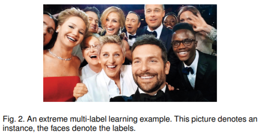 在文本分类,推荐系统,Wikipedia,Amazon 关键词匹配 [1] 等等应用中,我们通常需要从非常巨大的标签空间中召回标签。比如,很多人会 po 自己的自拍到 FB、Ins 上,我们可能希望由此训练一个分类器,自动识别谁出现在了某张图片中。