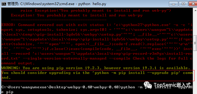 下面先在Windows下搭建web.py环境,网上提供的方法大部分是先把源码包下载下来,然后进入后python setup.py install 安装,但是用这种方法我总是安装失败。原因猜测是我的python版本和web.py版本匹配问题,后来解决方法是:通过pip安装。