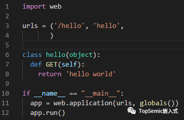 第1行:import web, 在每个web.py 应用,必须先import web 模块。