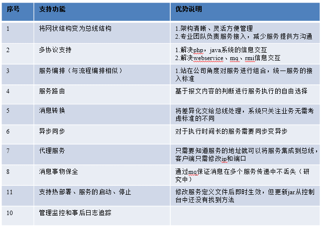 服务总线同服务框架一样,均是通过接口分解系统耦合性,不同子系统通过相同的接口描述进行服务启用服务总线是一个总线式的模型服务总线面向同构、异构系统适合:内部系统