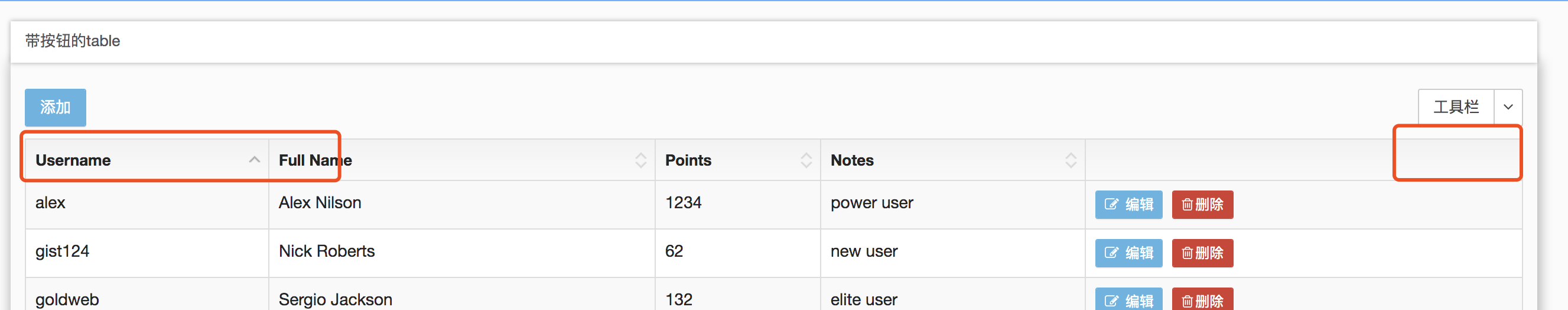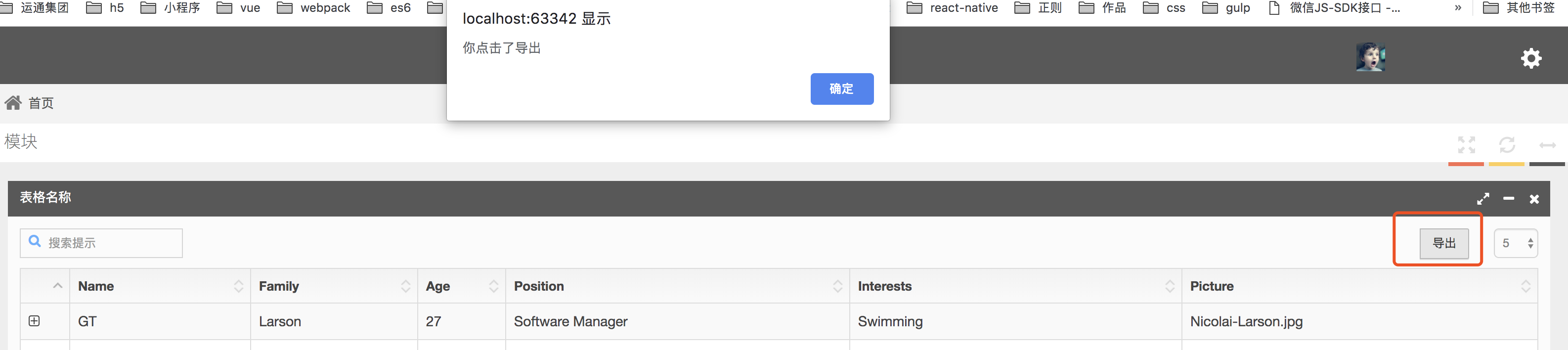 有时候需要为表格添加一些满足需求的自定义事件,下面的例子是 添加了一个导出按钮