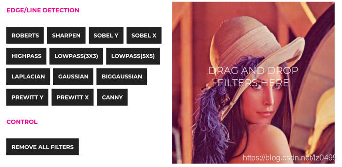 下面这个网址,可以将滤波器拖到图像上,产生过滤后的效果。