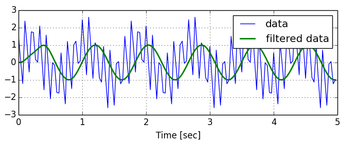 上图中,蓝线是原始的波形,绿线是低通滤波lowpass后的波形。可以看到,绿线的波动比蓝线小很多,非常平滑。