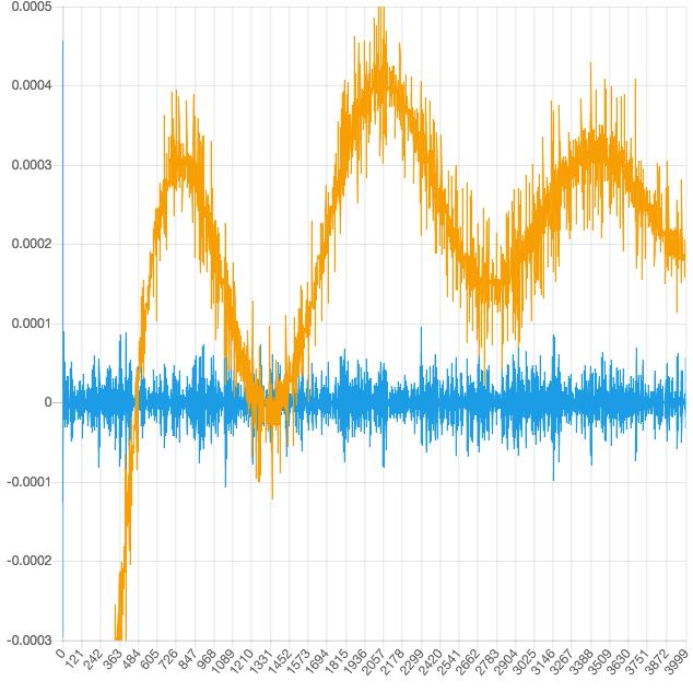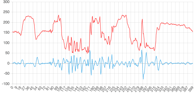 上图中,红线是原始的色彩曲线,蓝线是高通滤波后的曲线。