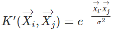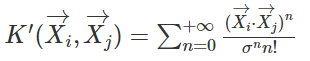 可以看到,其中X向量会生成类似多项式核展开的形式,譬如原来的参数有x1,x2。映射后,参数包含了x1*x1 ,x1*x2,x2*x2将原来2维映射到3维上了。