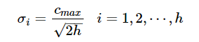 首先,选取h个中心做k-means聚类,对于高斯核函数的径向基,方差由公式求解: