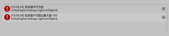 Debug.LogError("生命值不可为负");