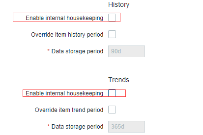 (2)Housekeeper的设置(zabbix_server.conf文件中):删除数据