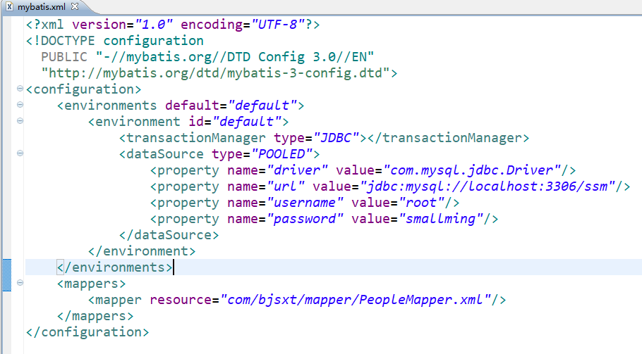 - 例如,在src目录下的mybatis.xml文件里配置resource使用的是相对路径,即从src目录下寻找com/bjsxt/mapper/PeopleMapper.xml