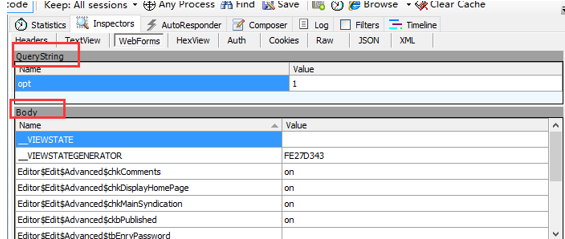 1)get请求参数一般都在请求行里,可以在Webforms的QueryString查看
