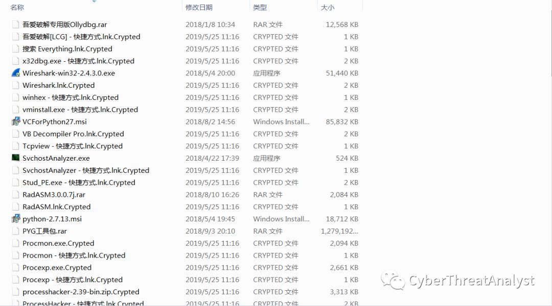 勒索病毒加密后的文件后缀名为crypted,如下所示: