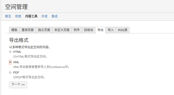 除了上面的Confluence整体备份,还可以选择针对某个空间进行手动导出、导入的方式进行备份和恢复,这个一般是在迁移的时候用到。具体做法如下: