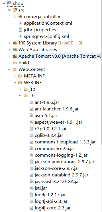 二、向WebContent下的WEB-INF下的lib中导入相关jar包