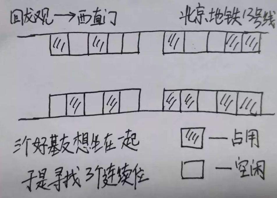 如果还是没有很清楚,试想一下平时和三五好友去食堂吃饭或者坐公交的场景,整个车厢都没有连续的3个座位,所以要么分开坐要么都站着: