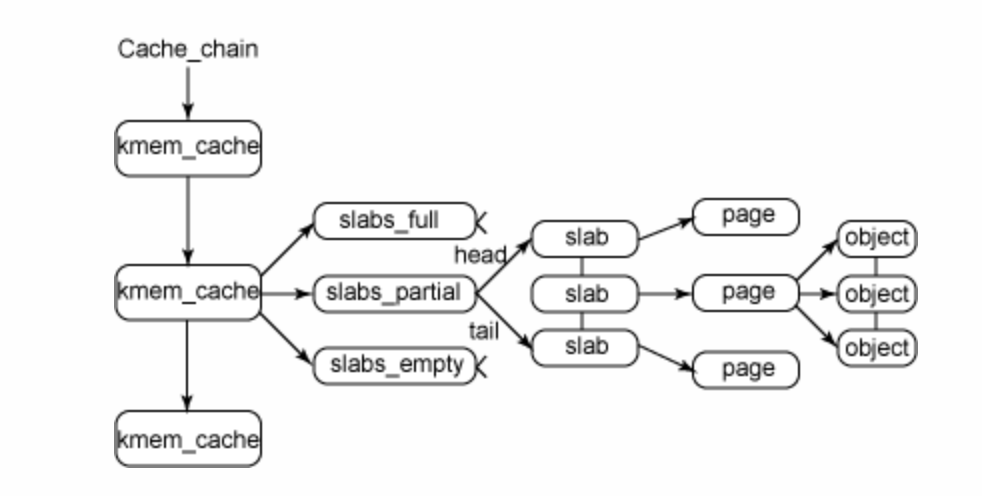 对象是从 slab 中进行分配和释放的,每个kmem_cache的slab列表是存在状态迁移的,但是被回收的部分slab并不会立刻归还给伙伴系统,并且在分配时会优先分配最近被释放的对象,目的是利用cpu缓存的局部性原理,可以看出来slab分配器的细节做的很足,但是为了实现这一套复杂的逻辑,就要维护多个队列会比伙伴系统更复杂。