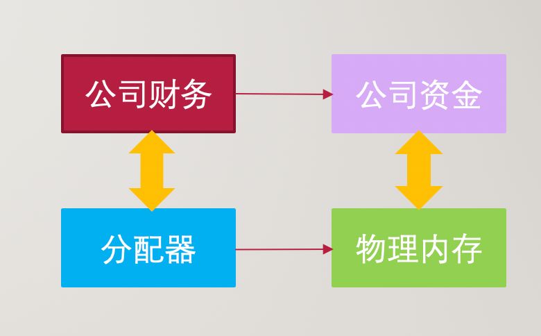 分配器和分配算法就像公司财务,内存就像公司资金,如何把资金合理使用是财务的本职工作,如何把物理内存合理使用是分配器的分内之事。