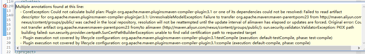 CoreException: Could not calculate build plan: Plugin org.apache.maven.plugins:maven-compiler-plugin:3.1 or one of its dependencies could not be resolved: Failed to read artifact