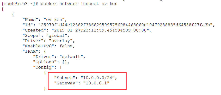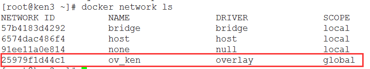 [root@ken1 ~]# docker network create -d overlay ov_ken