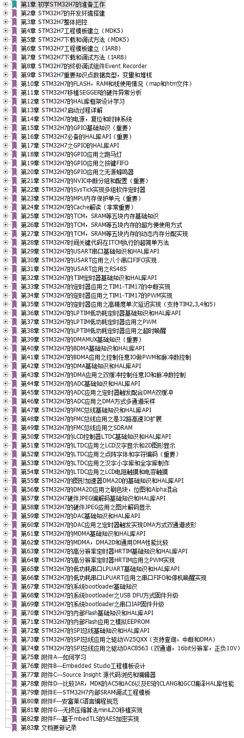 2、由于是基于HAL库的文档,所以不限制H7系列,其它F1,F2,F3,F4,F7等系列通用,只是H7系列的外设更加丰富和强劲些。