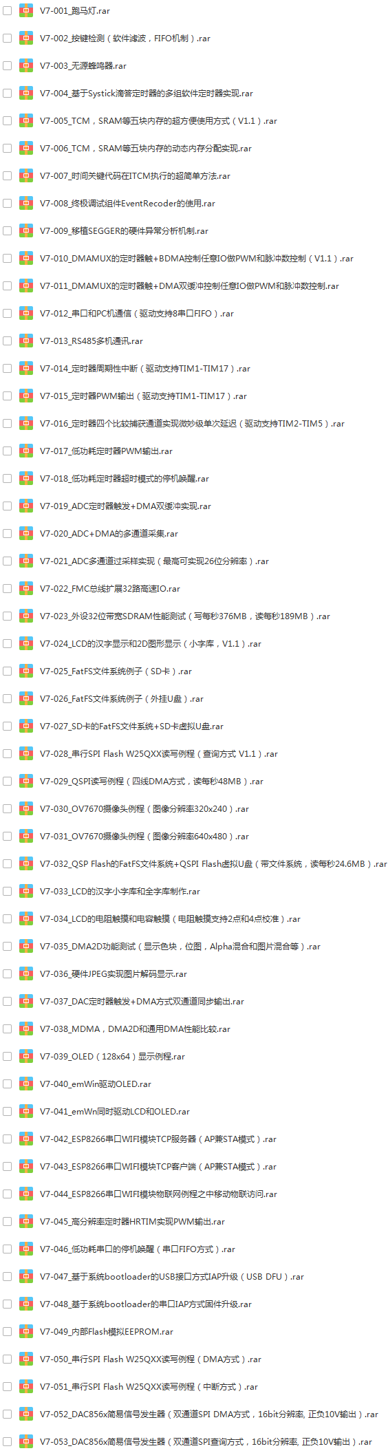 每个例子里面都有完整的驱动包,未讲解到的教程在后30章节