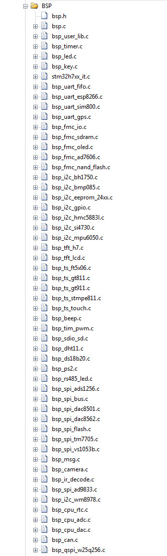 3、本次工程延续以往的代码风格,从底层BSP驱动包到应用代码,变量命名,文件命名,程序框架,注释等都比较规范,大家阅读或者移植都会比较方便。