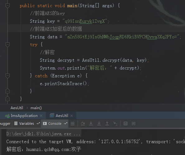 String decrypt = AesUtil.decrypt(data, aesKey);