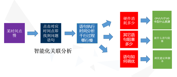 数据指标全面,而且对分析问题的流程和逻辑做到只需 “按步骤点击” ,比如突然一个时间点系统慢了,要帮助管理人员清晰的展示出分析问题的逻辑!